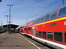 Since August 2013 a pair of TGV services have run between Freiburg and Paris via Mulhouse, which made a technical stop in Müllheim until December 2015, but passengers were not able to embark or disembark.[12] This technical stop became a scheduled stop in the 2015/2016 timetable, with effect from December 2015.[13][14] Since then Müllheim has had a direct connection to and from Paris.
