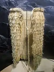 Māori prior to European colonisation wore woven garments for protection from the weather and to denote social status. There were two main types of garments: a knee-length kilt or grass skirt worn around the waist and secured by a belt, and a rectangular cape or cloak worn over the shoulders. Korowai (cloaks) in particular were symbols of high rank.[124]