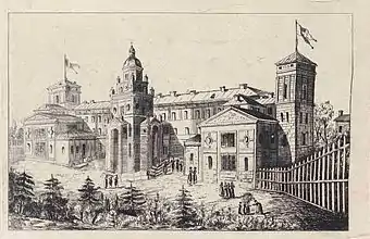 Miller-Verghy went on to study at the University of Geneva, where she graduated in Letters and took a Doctorate in Philosophy (1894–1895).[15][16] Upon her second return from Switzerland, Miller-Verghy became a teacher at girls' schools in Bucharest, and was headmistress of Elena Doamna.[11][14][16] In 1900, she published her own French teaching aid, pentru usul claselor superióre de liceie și externate ("to be used by high schools and extern schools"), followed in 1903 by a French translation from Vlahuță's Picturesque Romania.[17] As Ariel, she held a permanent column in the Bucharest newspaper La Patrie, while contributing articles to the literary review Sămănătorul, for which she used the signature Dionis ("Dionysus").[18] Additionally, Miller-Verghy became a vice president of the Maison d'Art club, a philanthropic society headed by Princess Elisabeth of Romania.[19]