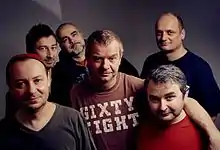 Mňága a Žďorp is a Czech rock band from Valašské Meziříčí. A precursor of the group was formed in 1983 under the name Slepé střevo. The band's lineup has changed frequently over the years, and currently consists of Petr Fiala on guitar, Martin Knor on second guitar, Petr Nekuža on bass, Jaromír Mikel on third guitar, Jiří Tibitanzl on saxophone, keyboards, and percussion, and Marcel Gabriel on drums. They became known for their 1991 hit "Hodinový hotel", from their debut album, Made in Valmez. Their latest record, released in 2019, is titled Třecí plochy.[1]