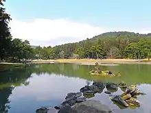 ![]() The Pure Land garden of Mōtsū-ji.The rocks are arranged to represent the rocky coast of Iwate. | |