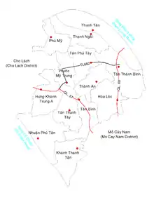 Communes and location of Mỏ Cày Bắc district