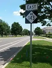 - University Region Staff (2013). M-143 Reassurance Marker at Lansing–East Lansing city line. East Lansing: Michigan Department of Transportation. Retrieved July 9, 2013 – via Wikimedia Commons.