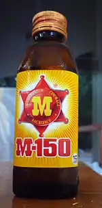 M-150 is a non-carbonated energy drink marketed by Osotspa Company Limited. In Thailand, it is sold in 150 mL glass bottles.[2] In 2010, it was reported that M-150 had a 65 percent share of market[3] but dropped to 46 percent by 2014.[4]