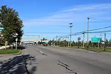 M-50 begins the final leg of its journey, as it crosses into Monroe county, passing through land that is mostly fields. Prior to reaching its interchange with US 23, the highway passes to the south of Cabela's,[3][4] a 225,000-square-foot (20,900 m2) outdoor sports retailer in Dundee.[6] After leaving town, the trunkline continues to the southeast, running to the south of the River Raisin, through rural areas as South Custer Road before entering the outskirts of Monroe where it finally ends its journey at a junction with US 24 (Telegraph Road) a few miles inland from Lake Erie.[3][4]