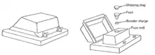 A diagram of a M1935 heavy anti-tank mine, note the thick base plate and relatively small main charge.