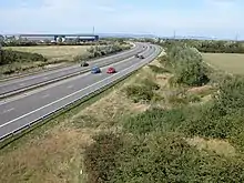 Original plans provided for an intermediate junction with the A403, to serve an expanded industrial area and Severn Beach.[2] Construction of Junction 1 commenced summer 2018 and was completed late in August 2020.[3] Despite this, the junction is not currently connected to the local road network, so cannot be used to access the motorway.[4]