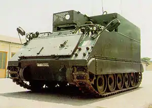 The M577 Command Post Carrier, also known as the M577 Command Post Vehicle or Armored Command Post Vehicle, is a variant of the M113 Armored Personnel Carrier that was developed and produced by the Food Machinery and Chemical Corporation (FMC) to function on the battlefield as a mobile command post i.e. a tactical operations centre, usually at the battalion level. In U.S. military service its official designation is Carrier, Command Post, Light Tracked M577.[6][7]