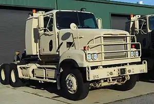 The M915 is a tractor unit used for line haul missions by the United States Army. Designed for use on improved roads it does not have a driven front axle.
