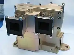 - Imaging Ultraviolet Spectrometer (IUVS)[34] – measures global characteristics of the upper atmosphere and ionosphere. The IUVS has separate far-UV and mid-UV channels, a high resolution mode to distinguish deuterium from hydrogen, optimization for airglow studies, and capabilities that allow complete mapping and nearly continuous operation.[35]