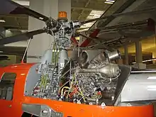 Perhaps the most significant feature of the Bo 105 is its rotor blades and rotor head. The rotor system is entirely hingeless, the rotor head consisting of a solid titanium block to which the four blades are bolted;[18] the flexibility of the rotor blades works to absorb movements typically requiring hinges in most helicopter rotor designs.[15] The rotor blades are made from reinforced-plastic glass-fiber composite material; the flexibility of the main rotor allows for active elements other than rotor pitch changes to be removed, greatly simplifying maintenance and extending blade lifespan.[19] The reliability of the advanced rotor system is such that, in over six million operating hours across the fleet, there was a total of zero failures (as of 1991).[20] The rigid rotor blade design adopted on the Bo 105 has been partially responsible for the type's agility and responsiveness; it remained an uncommon feature on competing helicopters throughout the Bo 105's production life.[16]
