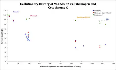 MGC50722, also known as uncharacterized protein LOC399693, is a protein that in humans is encoded by the MGC50722 gene (Mammalian Gene Collection Project Gene 50722[1]). This 965 amino acid human protein has a molecular weight of 104.495 kDa and one domain of unknown function (DUF390).[2] Generally conserved across mammals, this quickly evolving gene shows relatively low expression in most human tissues except in the testis.[3][4]