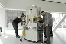 MICRO is a non-profit organization that builds six-foot-tall museums that are installed in public spaces such as in transit hubs, community centers, and hospital waiting rooms.[1][2] Each museum explores a topic through interactive displays, such as holograms, videos, and 3D printed sculptures.