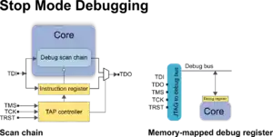 In the early stages of product development, it is common to use development boards with dedicated and readily accessible debug interfaces for connecting the debug tools. SoCs employed in the mobile market rely on two debug technologies: stop-mode debugging via a scan chain and stop-mode debugging via memory-mapped debug registers.