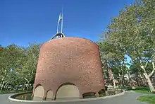 The Great Dome,[19] which sits atop Building 10, is modeled on McKim, Mead, and White's Low Memorial Library at Columbia University, which is in turn an imitation of the Pantheon in Rome. The Dome was originally planned to be a cavernous assembly hall, but budget limitations threatened to prevent construction of the Dome altogether. A smaller library – now the Barker Engineering Library – and lecture hall (10–250) instead filled the space. Architectural historian Mark Jarzombek later described the library space as a "capacious oculus [admitting] light into its center, and its perimeter surrounded by a row of Corinthian columns. Four curved topped aedicules [add] a counter-punctual element. More baroque in flavor that what one normally might have expected from Bosworth, the building seems in fact to be an inside-out quotation from Christopher Wren's St. Paul's Cathedral."[20]
