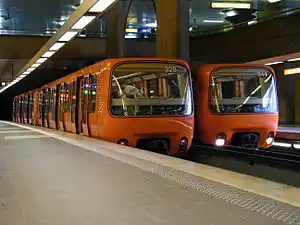 The MPL 85 (Métro Pneus Lyon 1985) is the driverless rubber-tyred electric train type used on the Lyon Metro's Line D. The entire fleet was built by Alstom (then Alsthom). The trains were delivered in 1988, but only entered service in 1991 (when Line D was opened). The accelerating and deaccelerating sounds of the MPL-85 units are quite similar to the MP 05 stock of the Paris Métro and to the NS-2004 stock of the Santiago Metro, although they look completely different.