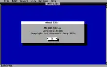 MS-DOS Editor, commonly just called edit or edit.com, is a TUI text editor that comes with MS-DOS 5.0 and later,[1] as well as all "x86" SKUs of Windows, until Windows 11. It supersedes edlin, the standard editor in earlier versions of MS-DOS. In MS-DOS, it was a stub for QBasic running in editor mode. Starting with Windows 95, MS-DOS Editor became a standalone program because QBasic didn't ship with Windows.