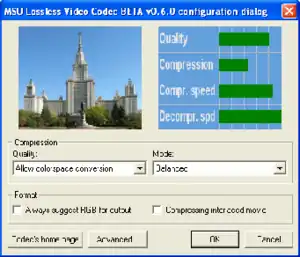 The MSU Lossless Video Codec is a video codec developed by the Graphics & Media Lab Video Group of Moscow State University. It was designed to provide space-effective lossless video compression. As of 2007 MSU had the second best compression ratio when compared to many other lossless video codecs,[1] with the better result shown by YULS codec.