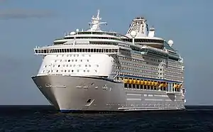 Adventure of the Seas is a Voyager-class cruise ship operated by Royal Caribbean International. The vessel was launched and entered service in 2001. Registered in the Bahamas, Adventure of the Seas has cruised from ports in the United States and Europe to sites in the Caribbean Sea, Baltic Sea, Mediterranean Sea, Canada and Europe. The ship has a 138,193 GT and is 311.1 meters (1,020 ft 8 in) long with capacity for 3,807 guests.