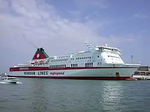 The MS Cruise Smeralda is a RO/PAX ferry operated and owned by Grimaldi Lines. The ship was built in Fosen Mek Verksteder A/S, Norway for Minoan Lines in 1997. It has a sister ship: Jean Nicoli for Corsica Linea. Her first name was Ikarus and then renamed Ikarus Palace.