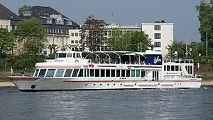 MS Loreley is a tourist boat built in 1996 for the Köln-Düsseldorfer Deutsche Rheinschiffahrt AG. From 2014 she is primarily used for charters and special occasions, as well as for cruises near Cologne. She is also used occasionally in schedule between Cologne and Bad Hönningen. Loreley is the identical twin of Asbach, (ex-Marksburg).