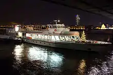 Loreley was built in 1995-1996 by the Dutch Shipyard De Hoop in Rijnwaarden. She was laid down in November 1995, and launched on 1 June 1996. Loreley was delivered on 30 June. On 5 July Loreley was christened in St. Goarshausen by Kirsten Treibisch, who called her after the Lorelei. Loreley is the fourth boat of the Köln-Düsseldorfer that bears this name. From July 6, Loreley was employed in scheduled service on the Middle Rhine between Koblenz and Rüdesheim am Rhein.[2] On 18 September 2003 Harald Schmidt aired his television show from aboard Loreley.