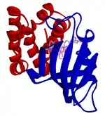 PIKKs have four domains at the protein level, which distinguish them from other protein kinases. From the N-terminus to the C-terminus, these domains are named FRAP-ATM-TRAAP (FAT), the kinase domain (KD), the PIKK-regulatory domain (PRD), and the FAT-C-terminal (FATC).[8] The FAT domain, consisting of four α-helices, is N-terminal to KD, but that part is referred to as the FKBP12-rapamycin-binding (FRB) domain, which binds the FKBP12-rapamycin complex.[8] The FAT domain consists of repeats, referred to as HEAT (Huntingtin, Elongation factor 3, A subunit of protein phosphatase 2A and TOR1).[9] Specific protein activators regulate the PIKK kinases but binding of them to the kinase complex causes a conformational change that increases substrate access to the kinase domain.[9]