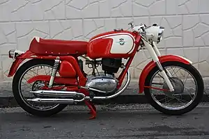 A Turismo GT version was introduced in 1960.[5] This had a single exhaust, higher handlebars and the petrol tank sat higher. The engine had a smaller 18 mm carburettor,[5] and developed 8 bhp @ 5,700 rpm.[8] 3,132 Turismo GTs were produced.[6]