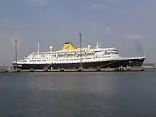 In 1989, ex-Stockholm was officially sold to the Italian Star Lauro Lines, who intended to convert the liner into a luxury cruise ship. The ship was still under charter as the Fridtjof Nansen, and so remained in Oslo until 1993. The ship was towed to a shipyard in Genoa, Italy, Andrea Doria's home port; but when she arrived, the press labeled her "the ship of death" (La nave della morte) due to the collision with Andrea Doria.[19] During conversion, it was discovered that the ex-Stockholm was in very good condition (except for the American-built replacement bow, which needed the most refurbishing).[20]