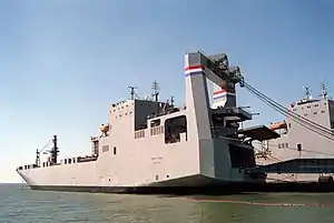 On 18 April 2005, she housed the military tactical vehicles for the 1st Marine Aircraft Wing, 12th Marines, and Combat Logistics Regiment 7 for exercise Cobra Gold.[3]