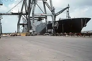 - "The Military Sealift Command-chartered vehicle cargo ship CAPE HUDSON (T-AKR-5066) lies tied up at the pier during unloading operations. The CAPE HUDSON transported the tanks and other equipment back from the Persian Gulf region, where they were used in Operation Desert Shield and Operation Desert Storm". The U.S. National Archives. 19 July 1991. Retrieved 15 April 2021.