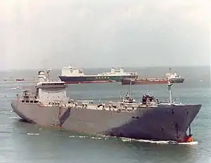 On 10 August 1990, together with her sister ship were activated to transport military equipments from Bayonne to Ad Dammam, Saudi Arabia during Operation Desert Storm and Desert Shield.[8] She would once again be deactivated in 1992.[8] A contract of $3.4 million for the G&M Welding & Fabrication Service, Galveston from the US Navy was made on 11 August 1992, for the repair of Cape Lambert and Cape Lobos.[9] In 1994, Cape Lambert and Cape Lobos were put into the Wilmington Reserve Fleet, North Carolina.[8] In February and March 1997, she made topside repairs at the Norfolk Shipbuilding and Dry Dock Corporation.[8] Cape Lobos was lowered to the Ready Reserve Fleet in late September 1999.[10]