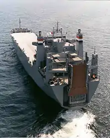 MV Cape Texas (T-AKR-112} is a Roll-on/Roll-off (RO/RO) ship with the Ready Reserve Force (RRF) of the United States Department of Transportation's Maritime Administration (MARAD).[4] As of 31 December 2014, her homeport is the Port of Beaumont in Beaumont, Texas, and she is on ROS-5 status; she is able to be fully operational within 5 days of being activated. When activated, she becomes part of the United States Navy's Military Sealift Command (MSC).