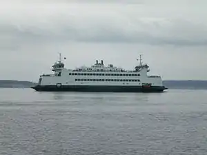 MV Chetzemoka ("The Chetzy") is a Kwa-di Tabil-class ferry built at Todd Pacific Shipyards in Seattle, Washington for the Washington State Ferries. It was scheduled to start on the Port Townsend-Coupeville (Keystone)[note 1] route in September 2010, but sea trials revealed excessive vibrations in the vessel's propulsion system.[5] The ferry was christened by Governor Christine Gregoire and began service November 14, 2010.[6]