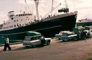![]() MV Gullfoss unloading at Reykjavik in 1968 | |