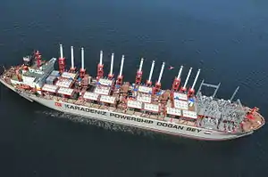 The MV Karadeniz Powership Doğan Bey is a Liberia-flagged Powership, a floating power plant, owned and operated by Karpowership. Built 1983 by Mitsui Co. in Ichihara, Chiba, Japan and christened MV Sono,[5] she sailed as a dry cargo ship under various names and flags until in 2010 she was converted into a Powership at the Sedef Shipyard in Tuzla, Turkey. She supplied electricity to the power grid in south-eastern Iraq. Currently, she supplies electricity to Sierra Leone.