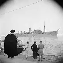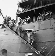 The Hunt-class destroyer HMS Ledbury entered the fire and smoke, rescuing 22 men from Melbourne Star and a few survivors from Waimarama.[15] Nine of Melbourne Star's crew and five of her DEMS gunners were not found.[7] Melbourne Star reached Valletta's Grand Harbour later the same day. Twelve hours after entering port a 6-inch (150 mm) shell from Waimarama's cargo was found embedded in the deck above the captain's day cabin. It had been blown in the air when Waimarama exploded, smashed through the wooden surface of Melbourne Star's deck, embedded itself in the steel plate beneath but failed to explode.[15]
