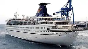 In December 2010, Louis Cruises announced they would be continuing the renewal of their fleet by selling Aquamarine to Mexican operator Ocean Star Cruises, which renamed her Ocean Star Pacific.[4] In March 2011, Ocean Star Pacific was moored at Caracas Bay, on Curaçao, for maintenance. She entered service for Ocean Star Cruises on 10 April 2011.[5] On 15 April 2011 the Ocean Star Pacific was disabled at Huatulco, Mexico, due to a fire in the engine room.[6][7]
