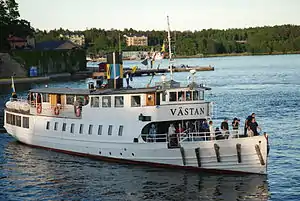 Västan is a motor vessel, and former steam ship, that was built in 1900 in Motala. She was originally named Nya Svartsjölandet and traded between Stockholm and Slut on Lake Mälaren. She was sold to Waxholmsbolaget for use in the Stockholm archipelago in 1937 and renamed Västan. She was converted to diesel power in 1953. The Västan is today the oldest of Waxholmsbolaget's classic fleet, operating alongside Storskär and Norrskär which, although newer, have retained their original steam propulsion. She is a listed historic ship of Sweden.[1]