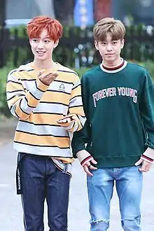 Lim Young-min and Kim Dong-hyun met as trainees under Brand New Music. They represented the agency alongside Lee Dae-hwi and Park Woo-jin in Produce 101 Season 2. When the show ended, neither of the two earned a spot in the project unit Wanna One: Young-min finished 15th overall, while Dong-hyun was eliminated prior to finale, placing 28th.[3]