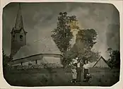 The local church, dedicated to Saint Anne, was built on the top of Hunter's Peak (Slovene: Lovski vrh, German: Annaberg 'Mount Saint Anne'[14]: 193 ) north of the settlement. It is also a site of a prehistoric Iron Age settlement. The pilgrimage church, a 16th-century building that survived the Second World War, was demolished in 1953 or 1954.[16] A chapel-shrine dedicated to Saint Anne was erected next to the site of the former church in 2003.[14]: 193