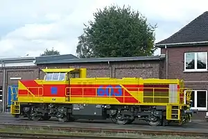The G1206-2 is a shunting variant of the G1206 with a smaller (920 kW or 1,230 hp) engine and transmission. Because of the smaller engine only one cooling fan is needed - this is the only external difference between this type and its 'big sister'.[2] Operators include Eisenbahn und Häfen GmbH (~7 units), Dillinger Hüttenwerke (1 unit), Ruhr Oel GmbH (also used by BP Gelsenkirchen GmbH) (1 unit).[17]