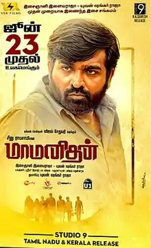 The film was scheduled for a theatrical release during September and October 2019,[29][30] but was delayed indefinitely due to a lawsuit filed against the producers by Jayaseelan who earlier registered the same title for his film. In March 2021, Seenu Ramasamy tweeted that Yuvan Shankar Raja had acquired the title rights from Jayaseelan and further stated that the promotions will begin for the film under the title Maamanithan.[31] The producers started negotiating with streaming platforms for a direct digital release, as theatres being shut down due to the COVID-19 pandemic.[32] LetsOTT revealed that the film is scheduled for a digital release through ZEE5 which purchased the digital rights, although no official confirmation has been made by the producers.[33] The film was theatrically released on 24 June 2022.[34][35][36]