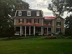 It is a 2+1⁄2-story, three-bay by two-bay frame, nineteen room structure clad in novelty siding with corner boards, with a mansard roof covered with wood shingles. When built in 1868, the house had a low hip roof possibly changed to reflect the new mansard style as at her father's summer home, Linwood.[3] The stone slave quarters were built about 1840 reside several houses south of the MacApline house. The Mackubin's owned at least 11 slaves on the property in the years prior to the civil war[3][4] Mrs Mackubin's cousin was the daughter of General Robert E. Lee[5]