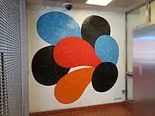MacArthur station opened on September 11, 1972, as the northern terminus of the inaugural BART line, which ran to Fremont. Upon the opening of the Transbay Tube in 1974, the station began to serve Transbay trains to San Francisco.[4] The station included several pieces of public art: an abstract mural by Mark Adams over a staircase (which Adams later replaced with two murals after the stairs were removed for an elevator in 2000), and tile mosaics by Adams and Alfonso Pardiñas in the fare lobby.[5][6]