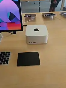 Mac Studio is a small-form-factor workstation designed, manufactured, and sold by Apple Inc. It is one of four desktop computers in the Mac lineup, sitting above the consumer-range Mac Mini and iMac, and positioned below the Mac Pro. It is configurable with either the M1 Max or M1 Ultra system on a chip.[1][2]