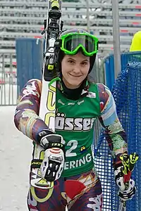 Macarena María Simari Birkner (born 22 November 1984) is a female skier from Argentina. She has represented Argentina in 2002, 2006, 2010 and the 2014 Winter Olympics, in the Alpine skiing events.[1][2] She also took part in the 2005 Alpine Skiing World Cup, where she came 20th in the Women's Combined, and in the FIS Alpine World Ski Championships 2009. She is the sister of fellow alpine skiers Cristian Simari Birkner and María Belén Simari Birkner.[3] She was in a relationship with British former alpine skier Noel Baxter, with whom she has a child.[4] Simari Birkner, has set an impressive record having completed all the five Alpine Ski events in both 2010 and 2014 Winter Olympic Games. She shares this record with pluri-medalist Tina Maze.