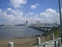 The Governor Nobre de Carvalho Bridge, also known as the Macau–Taipa Bridge, is a dual-lane two-way bridge connecting Macau Peninsula near Casino Lisboa and the island of Taipa at the northern slope of Taipa Pequena (Small Taipa Hill) crossing the former Baía da Praia Grande. It is the first bridge in Macau, to connect the peninsula and Taipa. It is locally known as "The Old Bridge" (Chinese: 舊大橋).[1]