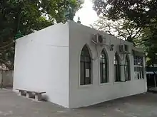 The Macau Mosque and Cemetery area consists of Macau Mosque, extended area of the mosque, Macau Muslim cemetery, headquarters of the Islamic Association of Macau, ablution place, badminton court and playground. The size of Macau Mosque is around 6.5 meter x 12 meter which can accommodate around 100 worshipers.[6] The Macau Mosque and Cemetery entrance gate was donated by Halima binti Sheik on 27 June 1973 in the memory of Adam Sheik.