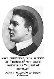 Greenleaf's first important role came in the late 1890s playing Herbert, the king's forester, in stock productions of The Prisoner of Zenda[3] and its companion piece Rupert of Hentzau.[4] In 1898, he played Mr. Hunston in Sir Arthur Wing Pinero's play Trelawny of the 'Wells' that opened at the Lyceum Theatre in New York on November 22, 1898. His next Broadway performance was in The Pride of Jennico with James K. Hackett and Bertha Galland staged at the Criterion Theatre in 1900.[5] Later that year, he played Myrtle May's lover in a road production of The Parish Priest with Daniel Sully.[6]